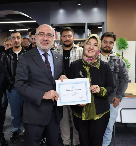 Following the library opening, an exhibition of calligraphy and illumination works by Dr. Fatmagül Saklavcı, an artist of the Ministry of Culture and Tourism, was also inaugurated.