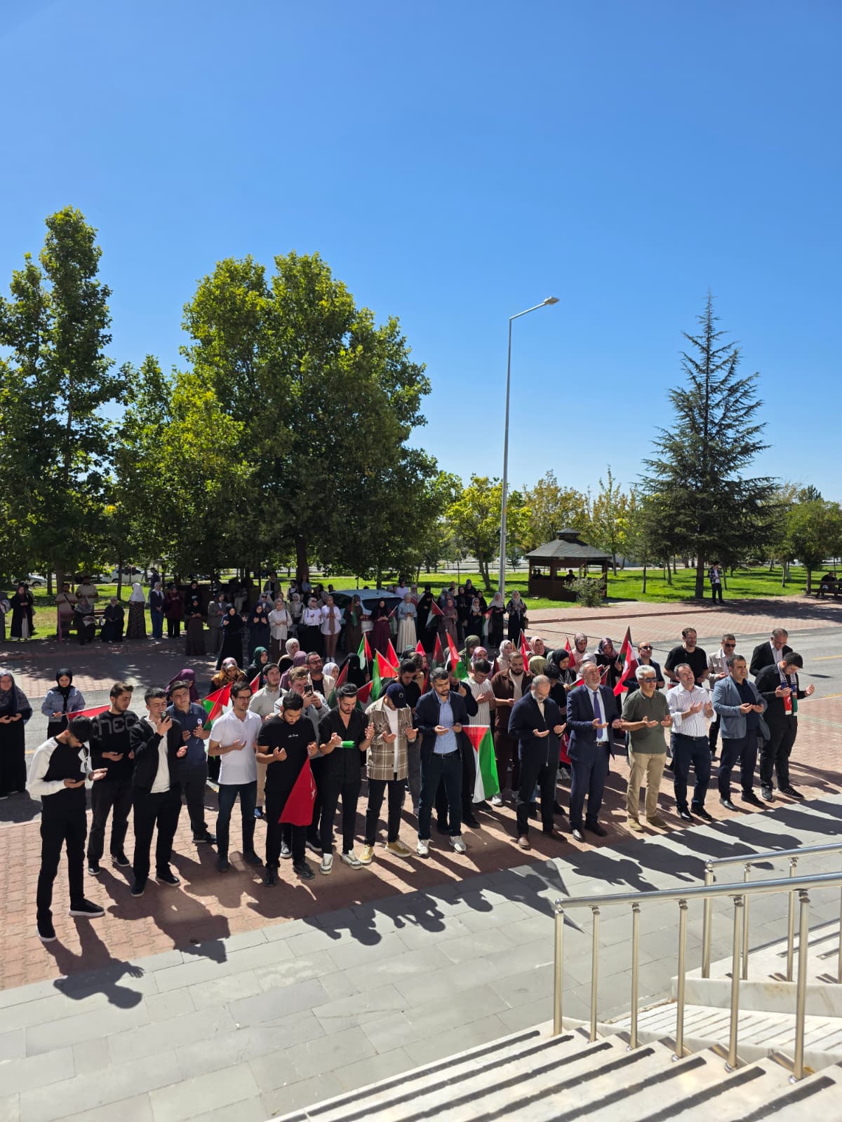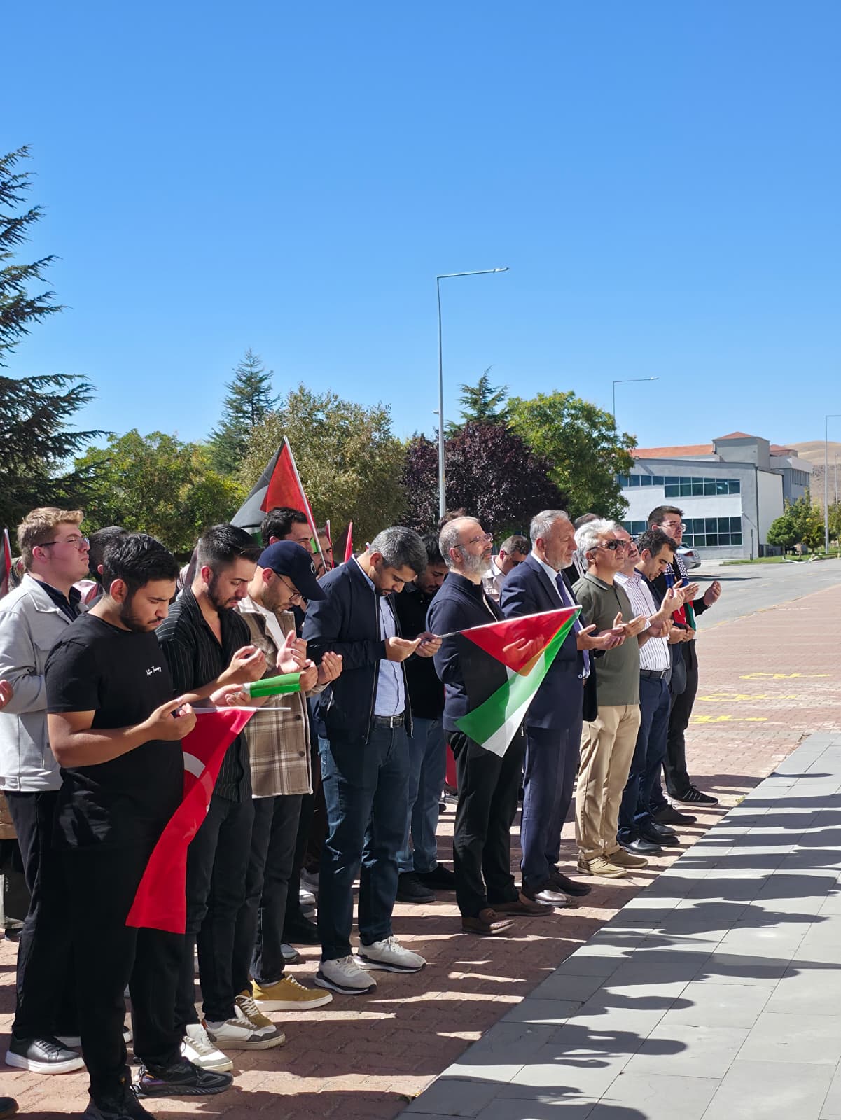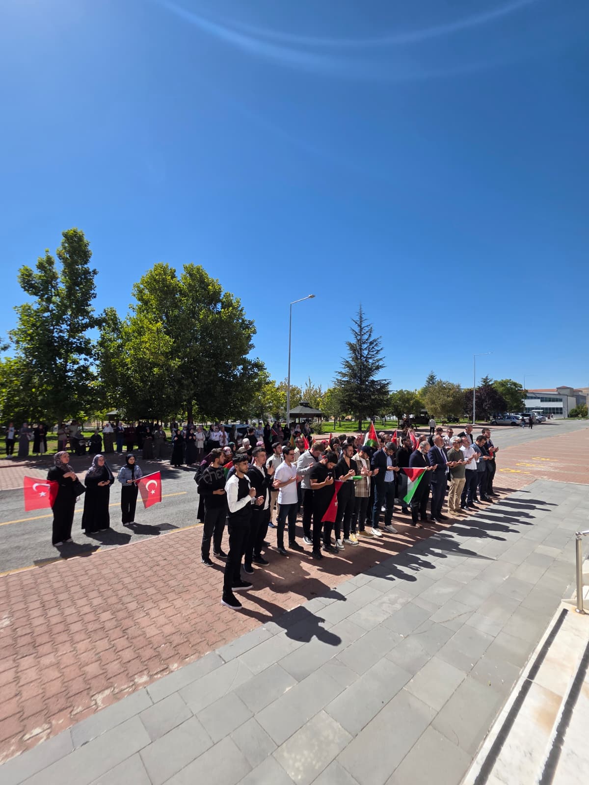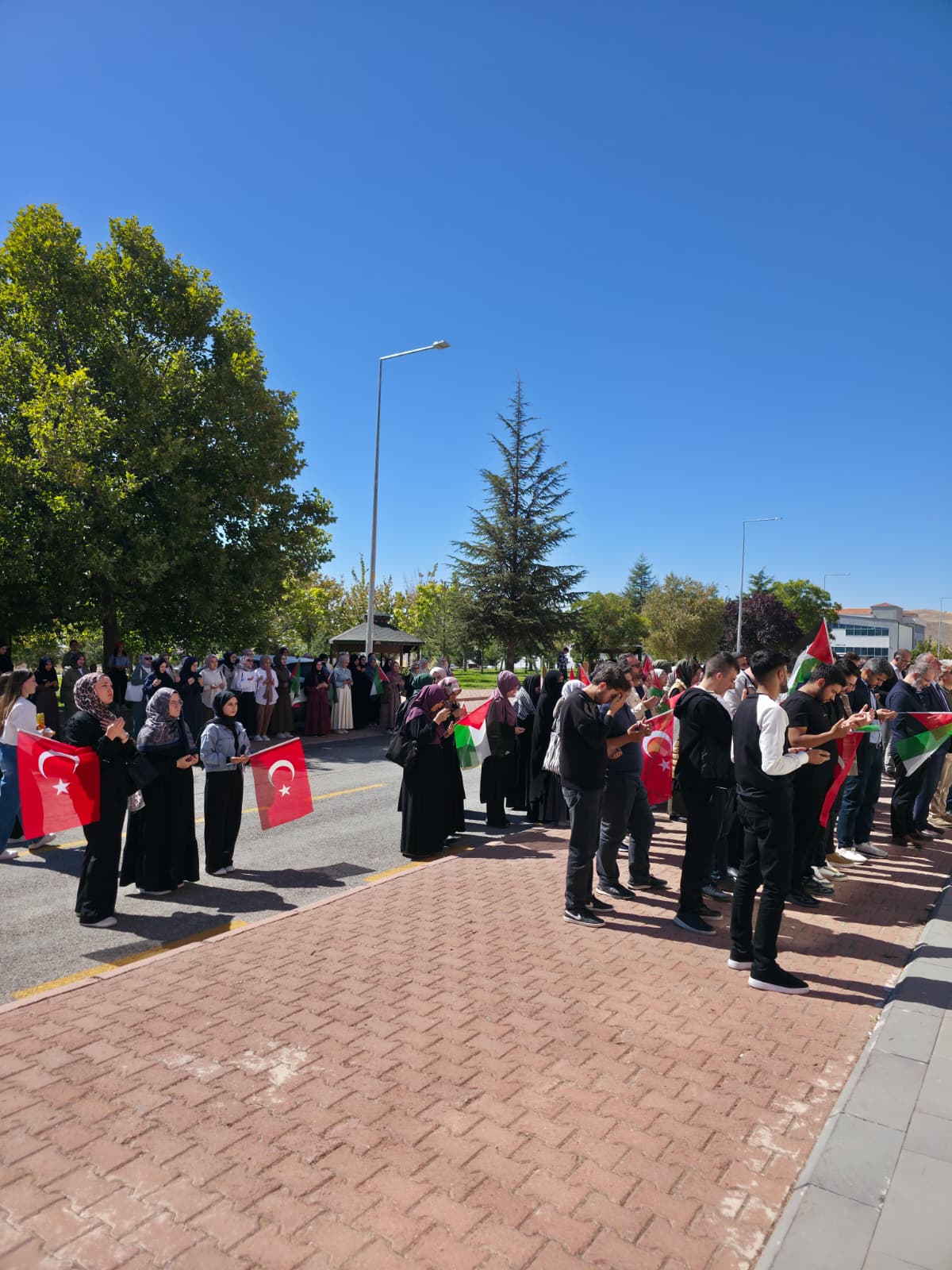 23 Eylül 2025 tarihinde saat 12.30'da Fakültemiz önünde; Rektör Yardımcısı Prof. Dr. Zeki TEKİN, Fakültemiz Dekanı Prof. Dr. Alparslan HANZADE, öğretim elemanları ve öğrencilerimizin katılımıyla Gazze'deki soykırımı normalleştirmemek, katliama dur demek adına "Filistine Özgürlük İçin Yürüyoruz" isimli program düzenlenmiştir.