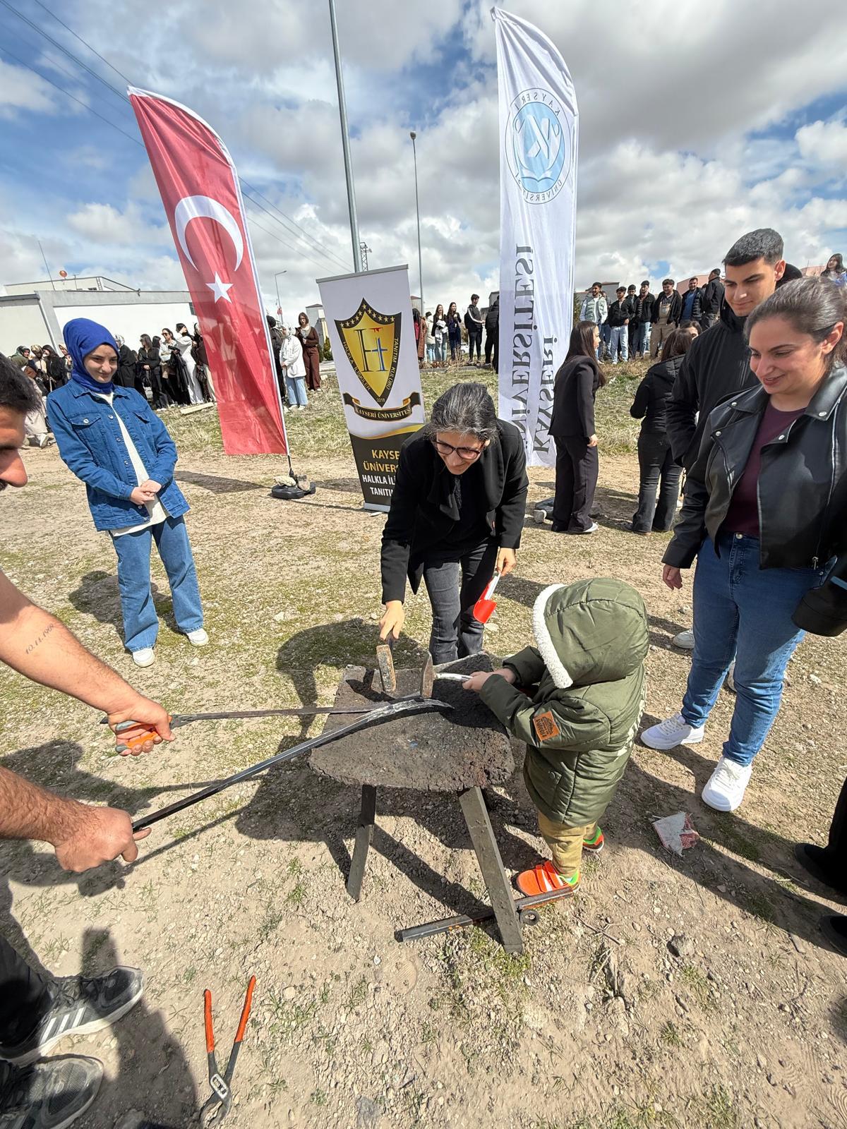 Program kapsamında Nevruz’un simgesi olan ateş yakılarak katılımcılar üzerinden atladı, birlik ve beraberliğin simgesi halaylar çekildi. Ayrıca Nevruz geleneğinde önemli bir yere sahip olan demir dövme etkinliği de gerçekleştirilerek kültürel değerler yaşatıldı.