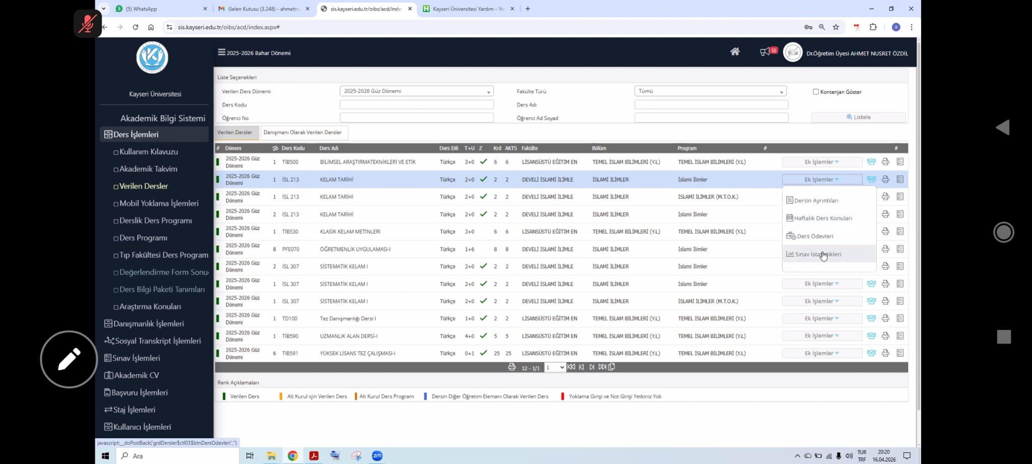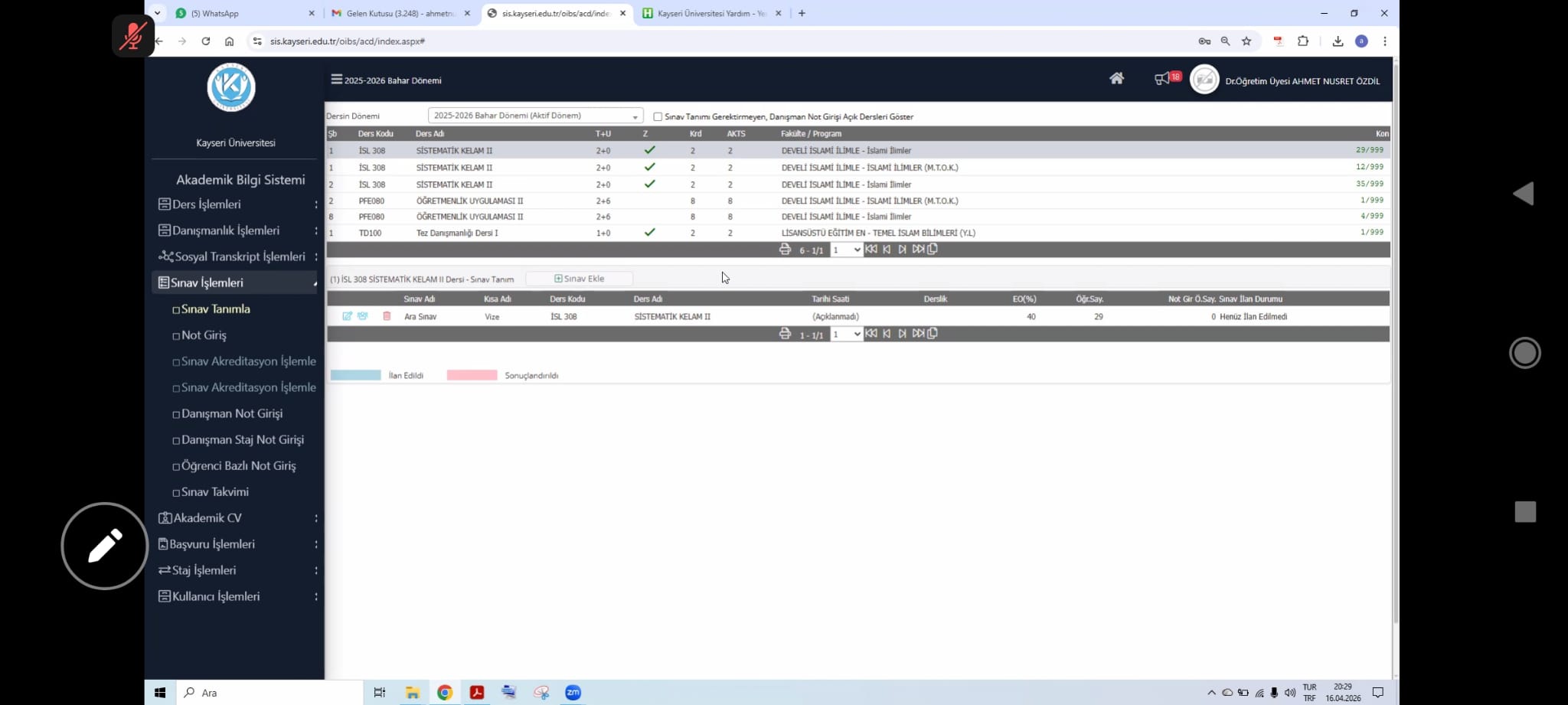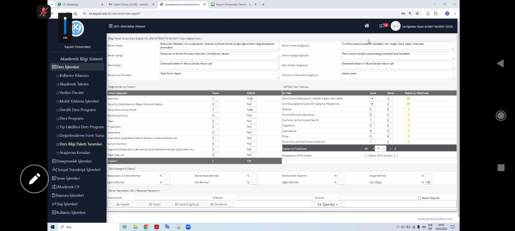 Fakültemiz Dekan Yardımcısı Dr. Öğr. Üyesi Ahmet Nusret Özdil tarafından verilen “2025-2026 Güz Dönemi Ders Dosyalarının Hazırlanması” konulu eğitim, 16 Nisan 2026 tarihinde saat 20.00’de çevrimiçi (online) olarak yapıldı.