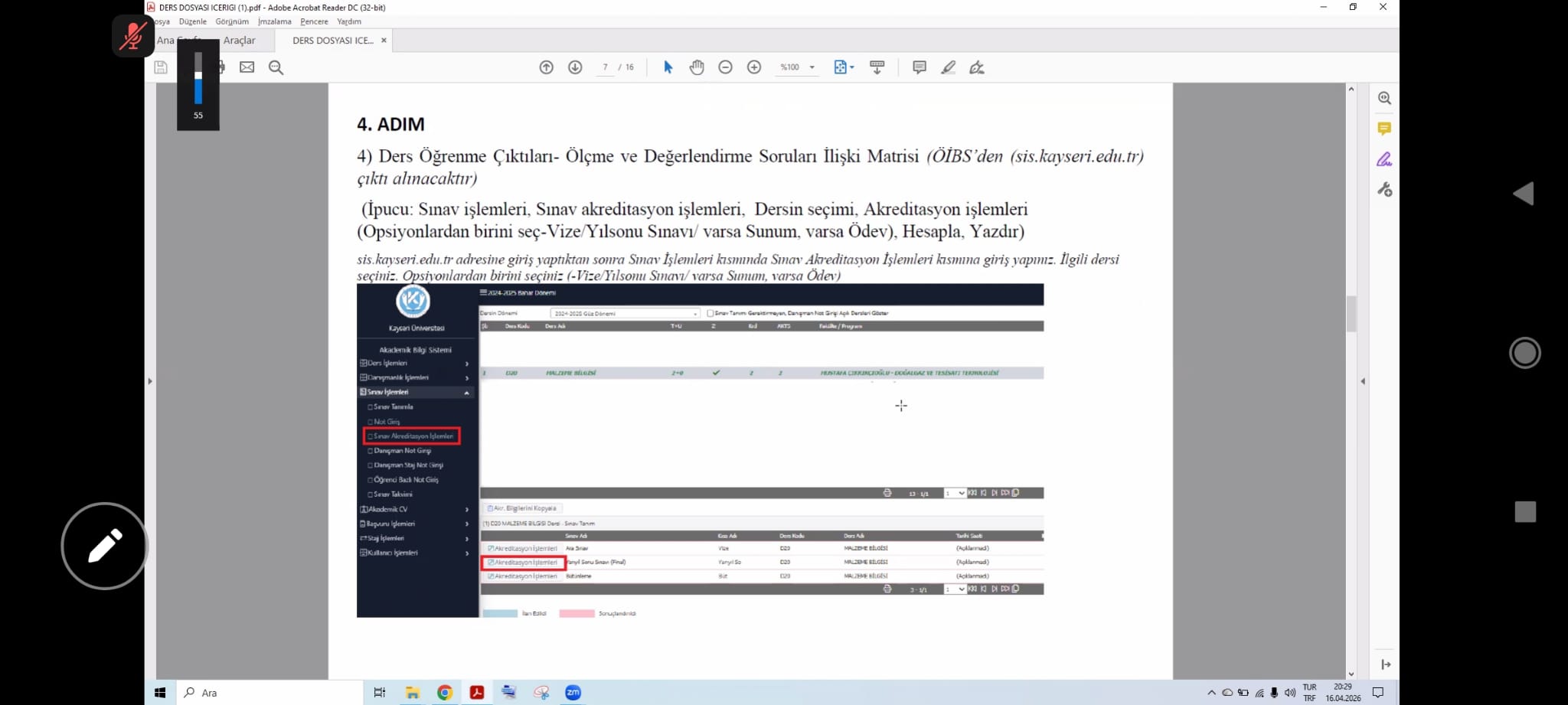 - Ders öğrenme çıktıları ile ölçme-değerlendirme soruları arasındaki ilişki matrisinin oluşturulması,