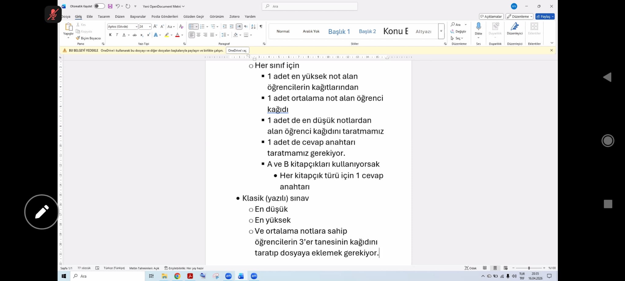 - Sınav kağıdı örnekleri ve farklı başarı düzeylerine ait öğrenci çalışmalarının dosyaya eklenmesi,