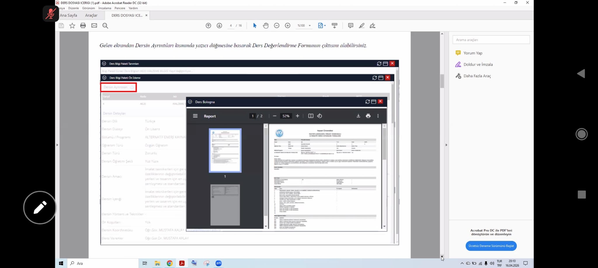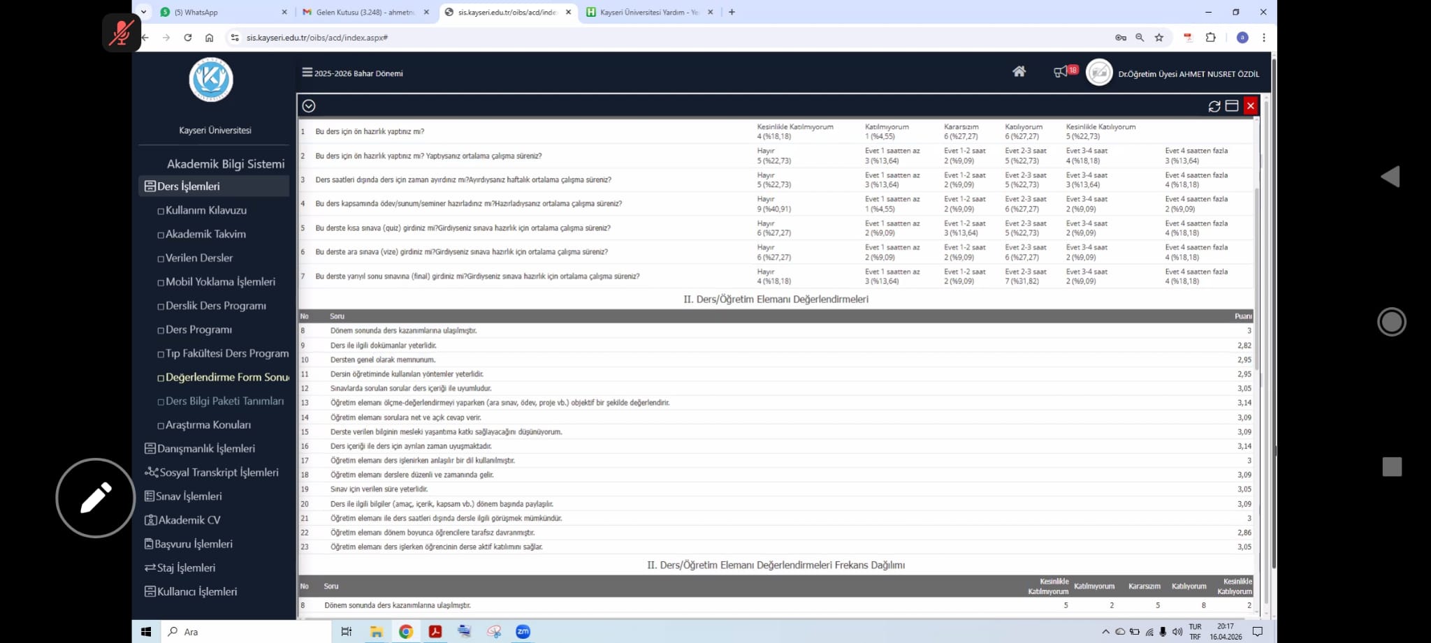 - Ders değerlendirme formunun oluşturulması ve sistem üzerinden çıktısının alınması,
