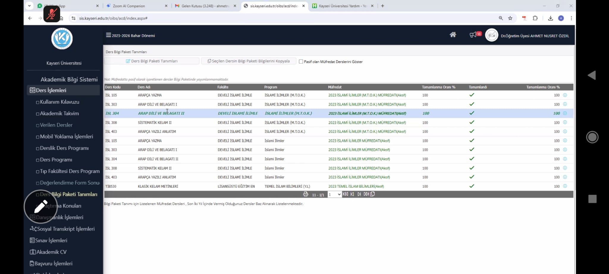 Ders izlencesinin Öğrenci Bilgi Sistemi (ÖİBS) üzerinden temin edilmesi,